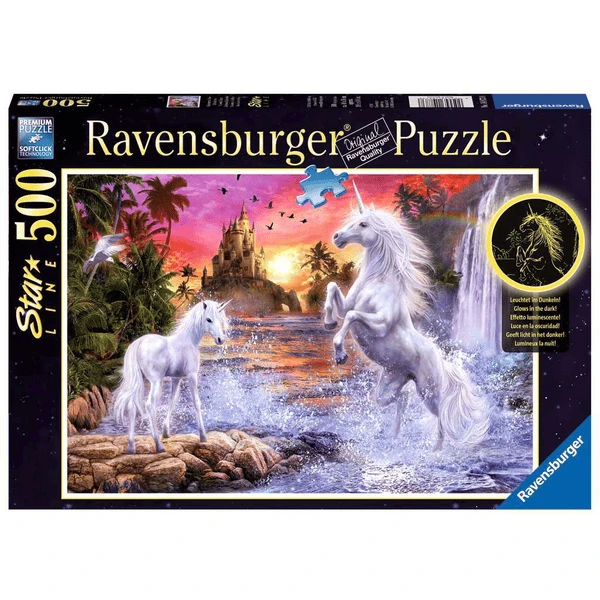 Die Motive der Star Line Puzzles kommen auch bei Nacht voll zur Geltung – denn sie leuchten im Dunkeln! Ravensburger Puzzles bedeutet Puzzlespaß in Premium Qualität. Puzzleteile, charakteristisch und einzigartig durch von Hand gefertigte Stanzwerkzeuge. Die jahrzehntelange Erfahrung in der Puzzleproduktion sowie den hohen Qualitätsanspruch lassen die Herzen der Puzzler höherschlagen und lässt erleben, wie eins zum andern passt. Hier wird Leidenschaft gelebt.Diese Puzzles bringen Licht ins Dunkel! Die Motive der Star Line Puzzles kommen auch bei Nacht voll zur Geltung – denn sie leuchten im Dunkeln! Dafür sorgt phosphoreszierende Farbe, die auf die Leuchtpuzzles aufgebracht wird. Mit Puzzle Conserver fixiert lassen sich die 500 Teile Puzzles ganz einfach aufhängen, so werden die stimmungsvollen Motive dauerhaft zum spektakulären Blickfang. Mit mehr als 300 Puzzlemotiven für Erwachsene von 99 bis 40.320 Teilen hält das Sortiment von Ravensburger für jeden das richtige Puzzle bereit. Ravensburger Puzzles bedeutet Puzzlespaß in Premium Qualität. Puzzleteile, charakteristisch und einzigartig durch von Hand gefertigte Stanzwerkzeuge, die jahrzehntelange Erfahrung in der Puzzleproduktion sowie den hohen Qualitätsanspruch lassen die Herzen der Puzzler höher schlagen und lässt erleben, wie eins zum andern passt. Hier wird Leidenschaft gelebt.
